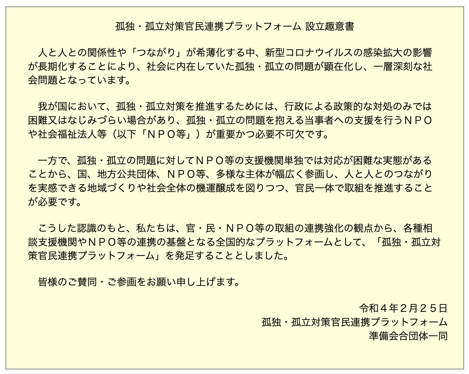 孤独・孤立対策官民連携プラットフォームについて